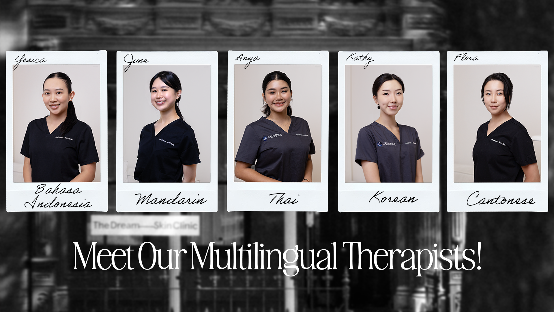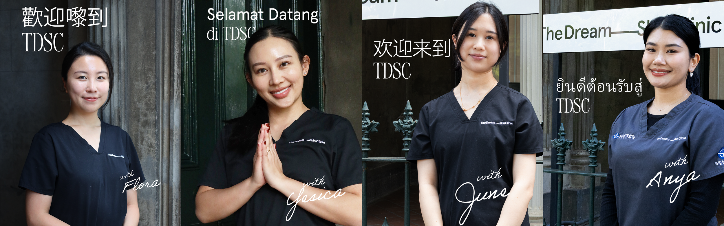 Our Dream Team truly reflects the diversity we celebrate. We are proud to be a culturally diverse clinic, offering non English language support so you can feel confident, heard, and supported throughout your journey throughout your journey to glowing skin.